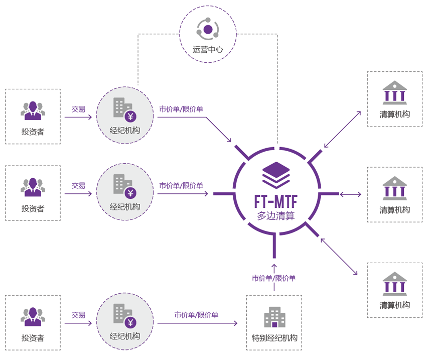 FT-MTF借鉴顶级国际交易所运营模式(清算中心-运营中心/清算机构-IB经纪机构/居间-客户),采用“机构会员每日无负债清算”的方式,让转型的经纪商客户保留原来的拓客营销模式,提供更多的客户来源渠道。